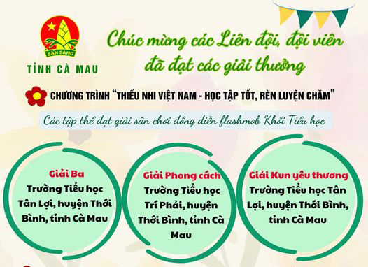 Theo kết quả Hội đồng đội Trung ương công bố, Cà Mau có 3 Liên đội và 02 cá nhân của các Trường Tiểu học và THCS trong tỉnh đạt giải trong Chương trình “Thiếu nhi Việt Nam - Học tập tốt, rèn luyện chăm” và Chương trình “Tuổi trẻ Việt Nam - Rèn đức luyện tài, dẫn dắt tương lai”.